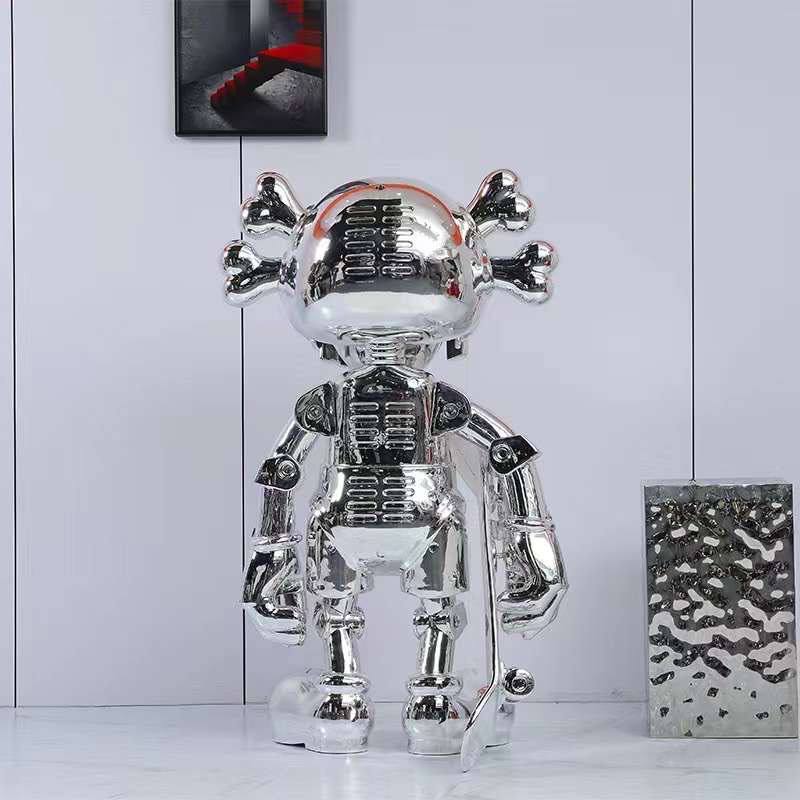 Опис: Запрошуємо вас в світ естетики та стилю з фігуркою KAWS Hajime Sorayama No Future у вражаючому срібному кольорі та величезному розмірі 130 см. Ця фігурка не просто предмет декору – це твір мистецтва, який надасть вашому простору неповторний характер.