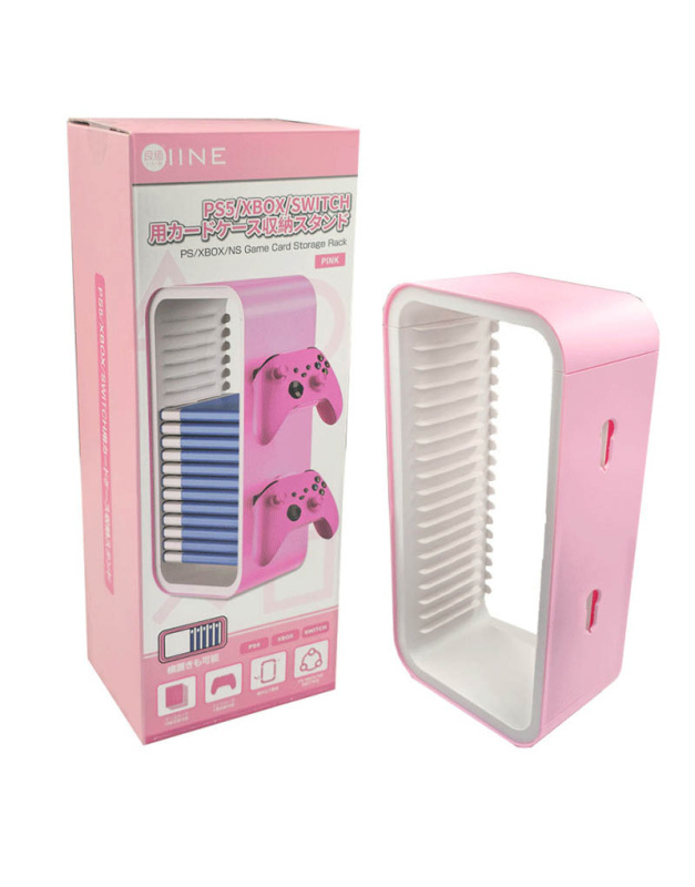 Придбайте рожевий стелаж для зберігання 18 ігрових дисків та 4 геймпадів від Gamesua, щоб організувати ваші ігрові аксесуари стильно та зручно!