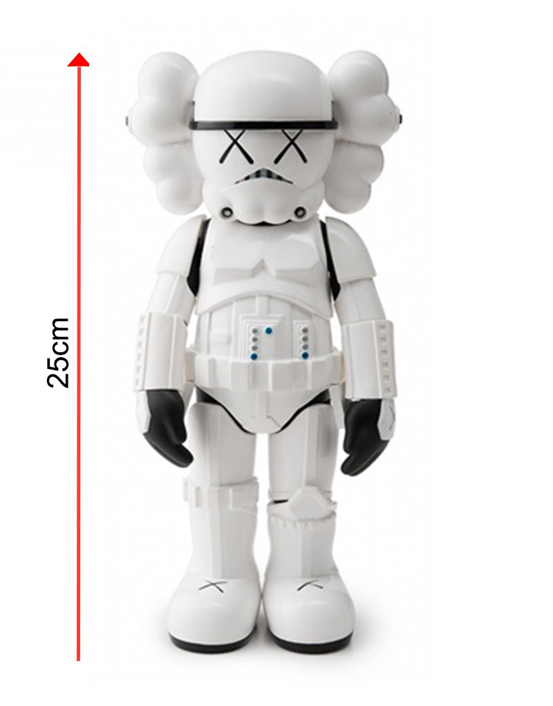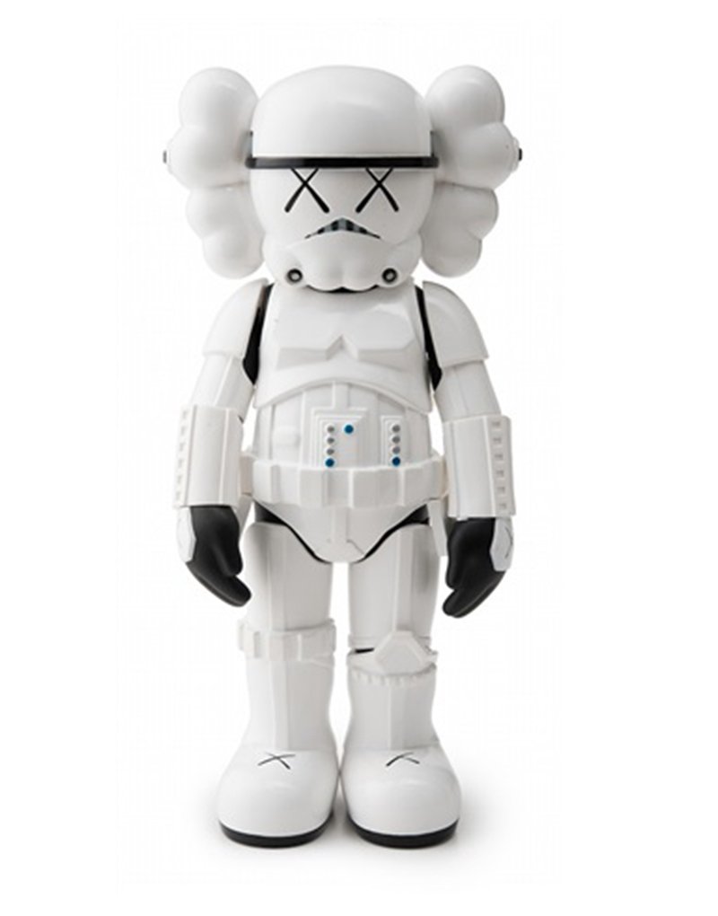 Поработав над интерпретацией Дарта Вейдера в прошлом году, KAWS снова объединился в специальный совместный проект с легендарной серией "Звездных войн". Компаньон штурмовика из "Звездных войн" - забавное переосмысление патрульного подразделения империи злых Звездных войн. Белый штурмовик, созданный в 2008 году, имеет размер 25,4 см. Фирменный надутый череп KAWS буквально выскакивает из шлема компаньона, в то время как культовые XX бренда расположены над глазами.