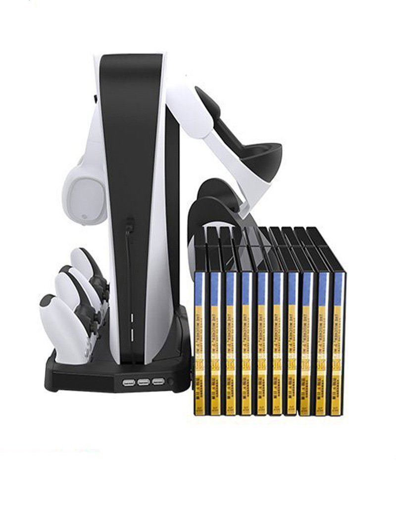 Зарядная станция для PS5 KJH-P5-025 - универсальная многофункциональная охлаждающая база со стойкой для хранения дисков и зарядкой джойстиков ПС5.