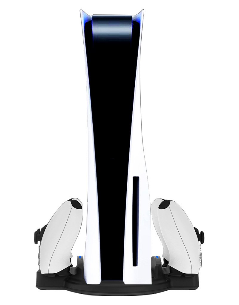 Зарядная станция также служит вертикальным Стендом для PlayStation 5. Она проста в установке и экономит место на Вашем рабочем столе. Просто поместите PS5 на подставку, и ваша консоль PS5 будет прочно закреплена. Высококачественные резиновые противоскользящие ножки предотвращают скольжение подставки и падения приставки.